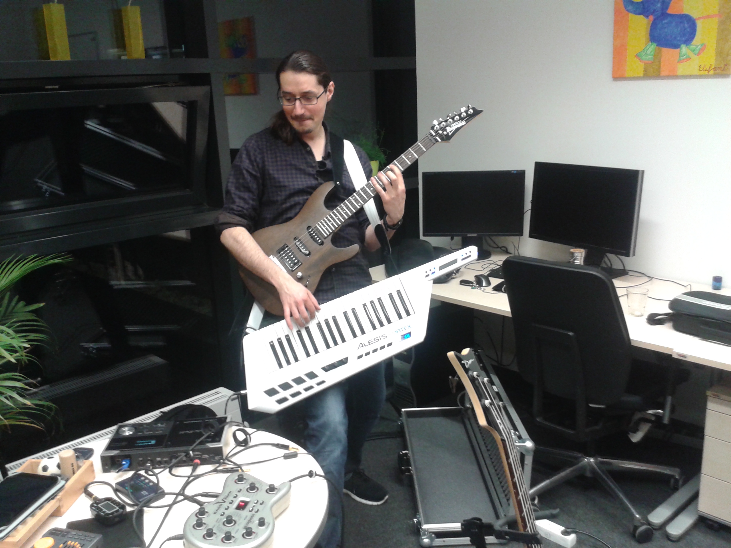 Wir planen zur Zeit die Konzertsaison 2015 und hoffen, dass wir bald wieder live für euch spielen können. In der Zwischenzeit proben wir natürlich fleißig und experimentieren mit neuen Ideen zur geschickten und platzsparenden Kombination verschiedener Instrumente - siehe Bild. ;-)