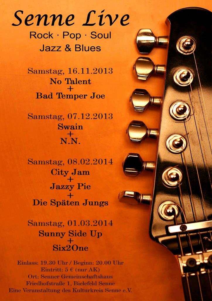 Unser nächster Gig steht: Am 8. Februar werden wir gemeinsam mit "Jazzy Pie" und den "späten Jungs" bei Senne Live auftreten, einer Veranstaltung des Kulturkreis Senne e.V.